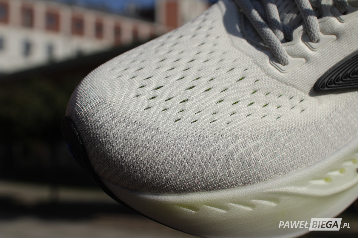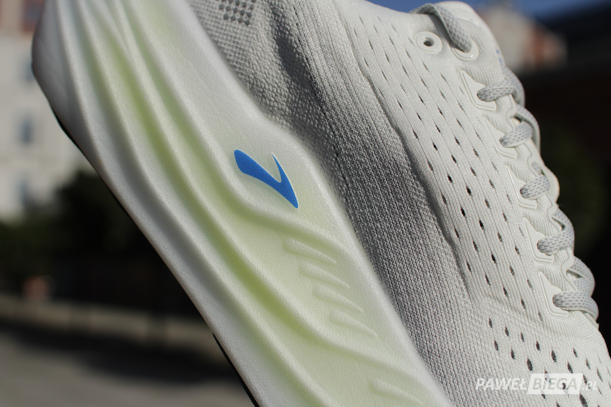 Trzymania i stabilności w Glycerinach Max jest dużo. Zapiętek jest odpowiednio usztywniony (choć może wydawać się też dość niski), co ma na celu stabilizację stopy w bucie. Dodatkowo, konstrukcja buta tworzy ramę wokół stopy i sprawia, że stopa nieco ,,wpada” w podeszwę, co zwiększa stabilność. Wnętrze buta jest komfortowe, chociaż nie ma tu aż tak dużej ilości gąbki jak w modelach Glycerin 21 i Ghost 16. Nie znajdziemy również integracji języka z cholewką, co mogłoby poprawić dopasowanie. Mimo to, komfort wciąż pozostaje na wysokim poziomie, a jeśli cenisz sobie wygodę, ten model z pewnością spełni Twoje oczekiwania.