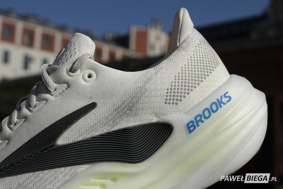 Cholewka buta oferuje też sporo miejsca. Zmierzona szerokość w najszerszym punkcie wynosi 105,8 mm, co na papierze jest standardową wartością. Warto jednak spróbować, bo but oferuje więcej przestrzeni wewnątrz niż pokazuje to pomiar. Przestrzenią wewnątrz można się miło zaskoczyć. Warto też zerknąć na rozmiarówkę. Wiele lat w Brooksach miałem rozmiar 12 US. W przypadku tego modelu wybrałem jednak but o pół rozmiaru większy.